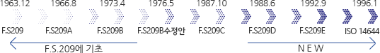 -청정도 CLASS의 분류를 주로 한다. -CLASS 100이상과 CLASS 100미만으로 나눈다. -0.1,0.2,0.3㎛의 측정을 추가 -청정도 평가에 통계적 수법을 도입 -Sampling 위치, 수량을 명시 -새용어의 추가 -검증과 Monitoring을 구분 |